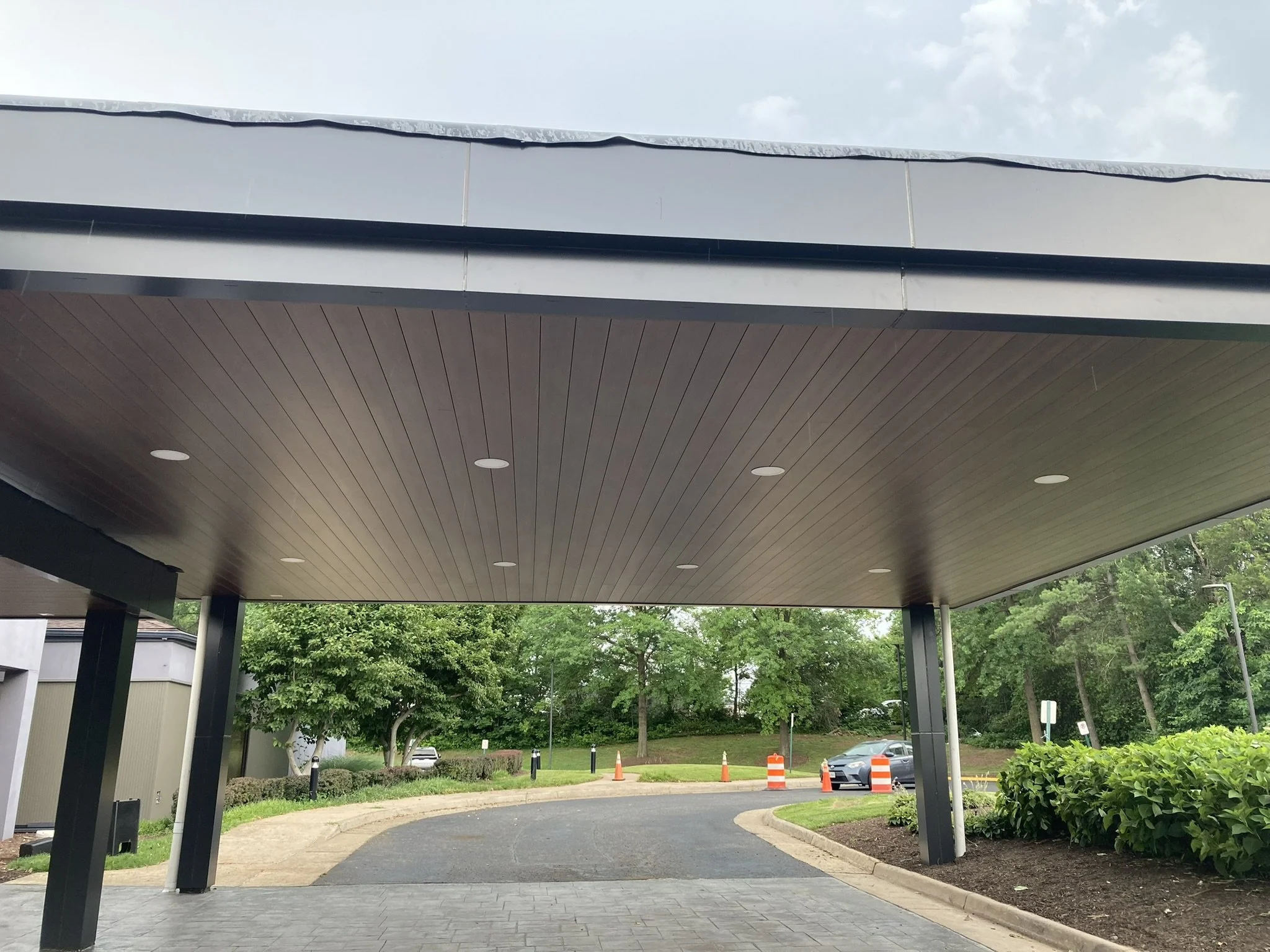 CFS Designs US fabricated and detailed this sleek courtyard canopy using Alucobond ACM panels in Dusty Charcoal II. The result is a clean, modern finish that enhances the architecture with precision craftsmanship and lasting durability.